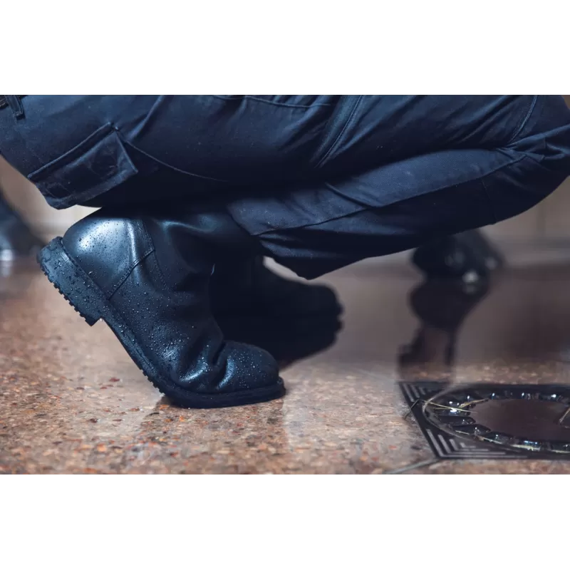 • une semelle à petits crans en caoutchouc nitrile très résistante à la glisse, à la chaleur par contact et isolante contre les sols froids ;